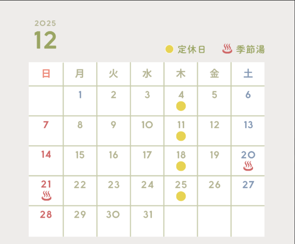 誠に勝手ながら、下記の日程を12月の定休日とさせていただきます。